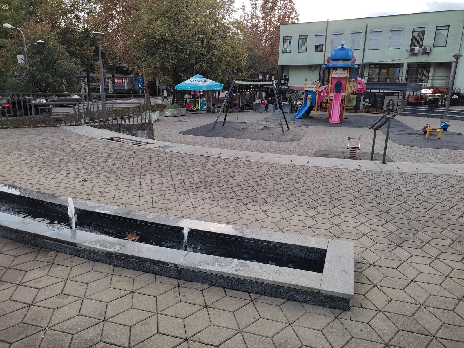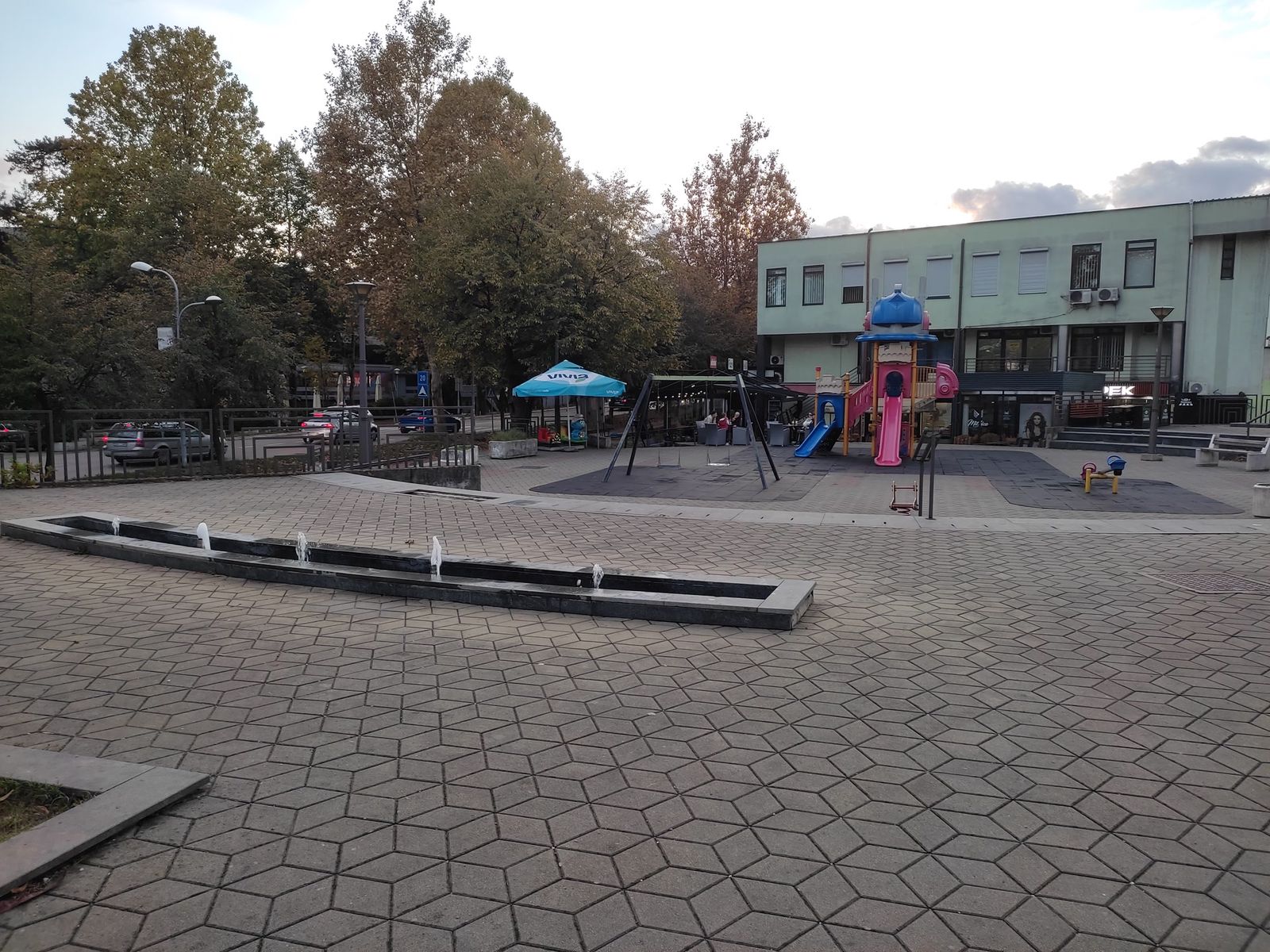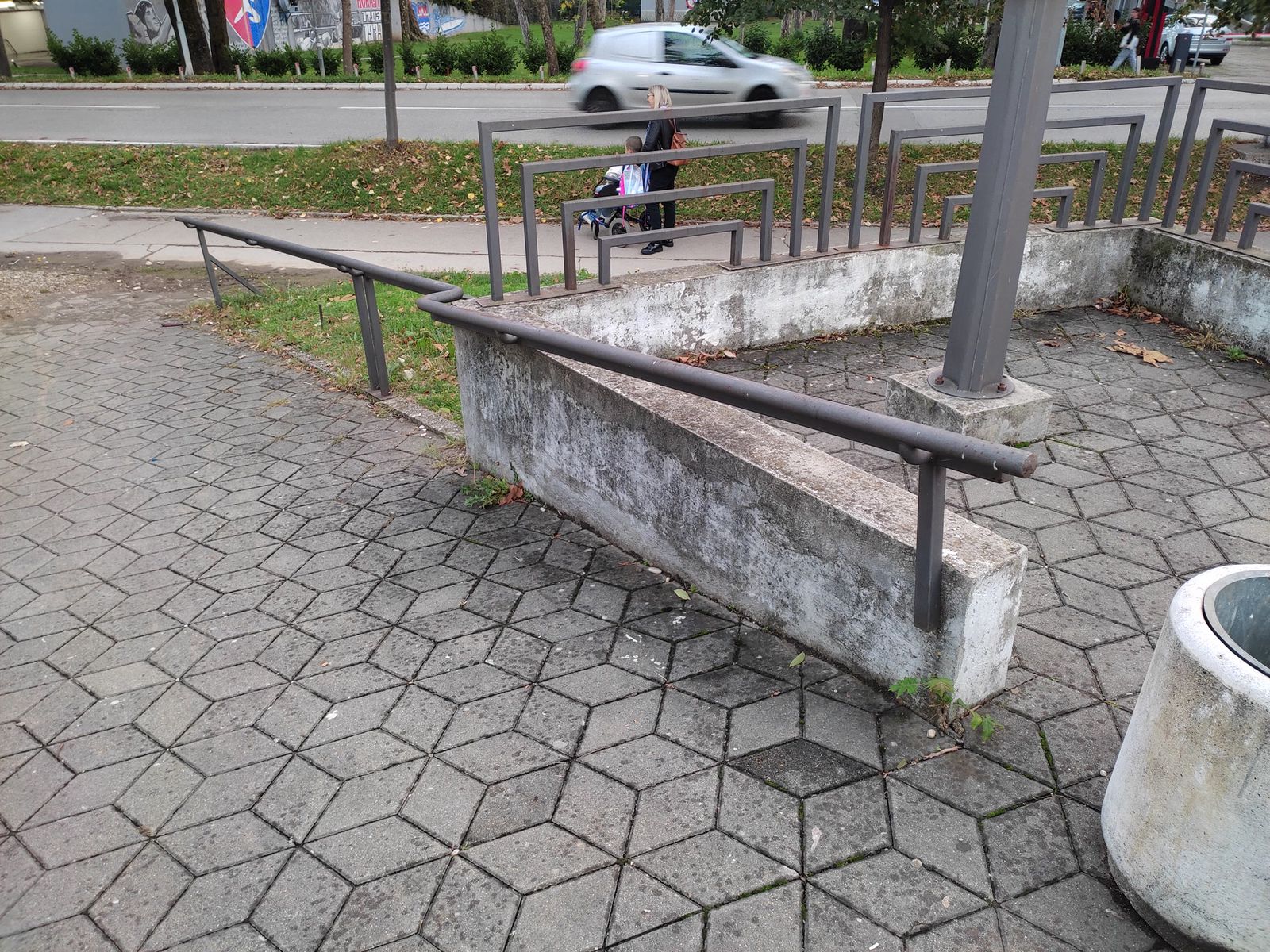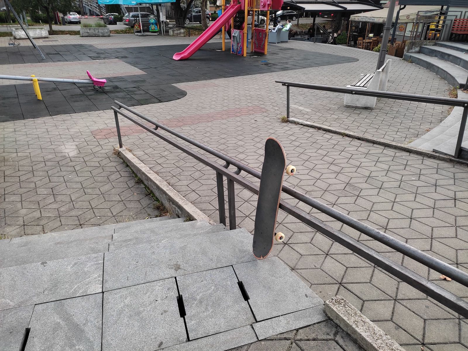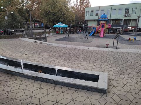 This spot offers many ways to skate it. The flaground is pretty bad, and there is a children's playground.